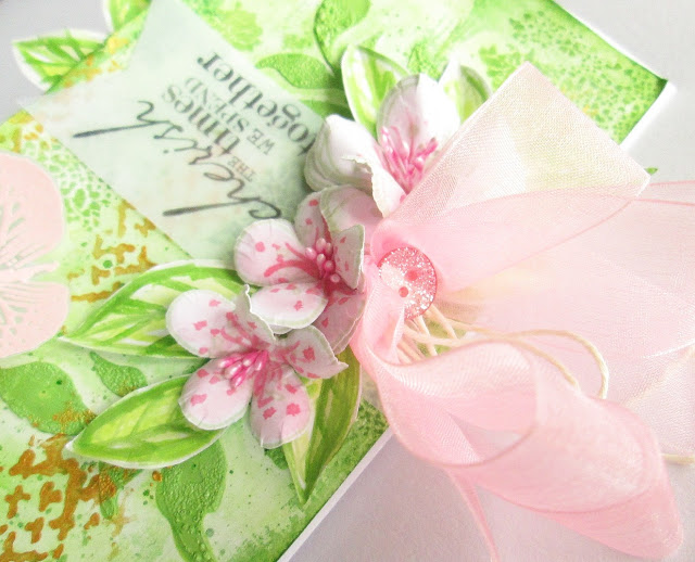 - razítka: na květiny (Artemio) , motýl a nápis (Kaisercraft Treasured Moments) a texturové (Kaisercaft Lattice)